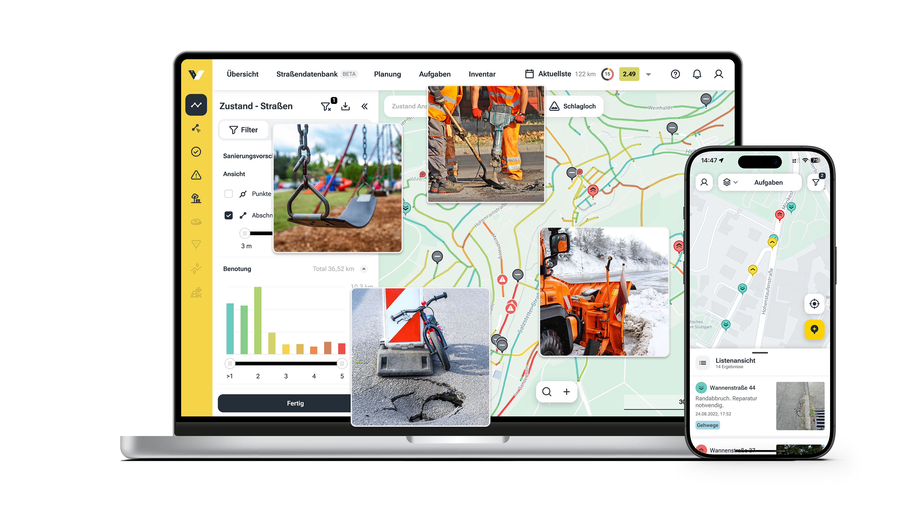 With our AI-based road management system, we help cities and municipalities digitally assess and efficiently maintain the condition of their roads. Our smart solution is not only forward-thinking but also scalable, allowing it to adapt flexibly to the needs of any region.