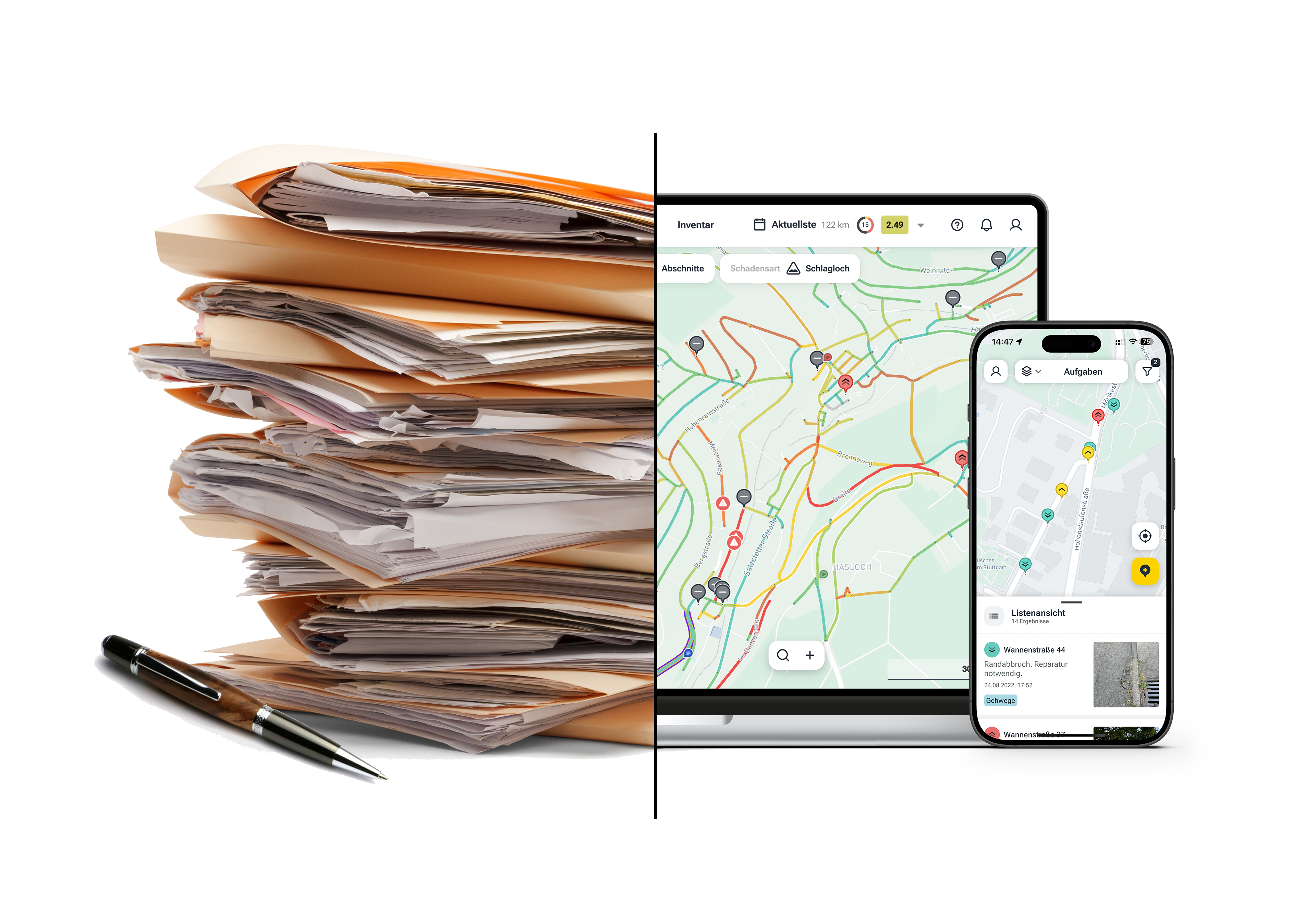 Mit unserem KI-basierten Straßenmanagementsystem unterstützen wir Städte und Kommunen dabei, den Zustand ihrer Straßen digital zu erfassen und effizient zu erhalten. Unsere smarte Lösung ist nicht nur zukunftsorientiert, sondern auch skalierbar, sodass sie sich flexibel an die Bedürfnisse jeder Region anpassen lässt.